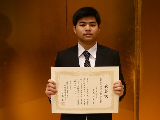 3月13日(水)に開催された卒業式にて、学生3名の奨励賞の表彰を行いました。