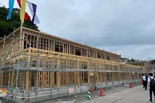 2021年7月22日 いよいよ、足場が組まれ始め、その大きさを見ることができるようになってきました。
