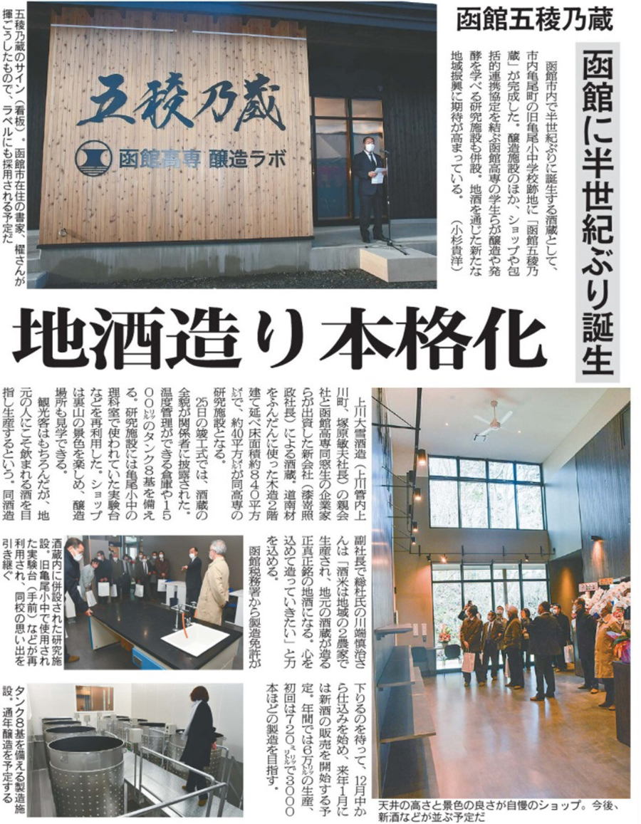 函館新聞に五稜乃蔵に関する記事が掲載されました。