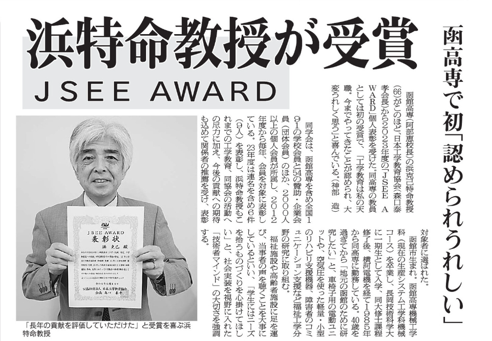 函館新聞 浜特命教授が受賞