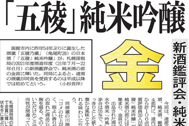 函館新聞 「五稜」純米吟醸 新酒鑑評会・純米酒の部金