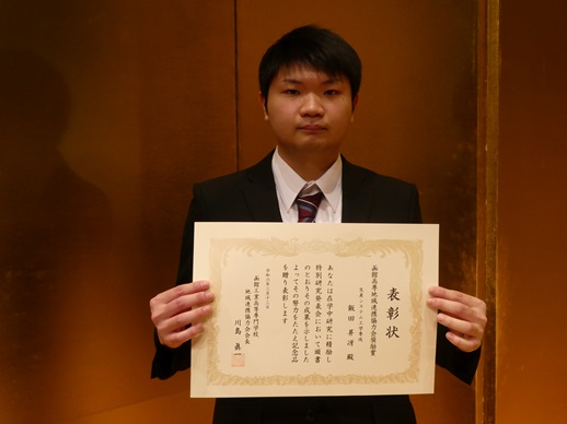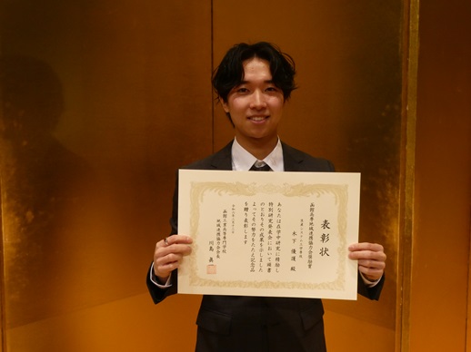 3月13日(水)に開催された卒業式にて、学生3名の奨励賞の表彰を行いました。