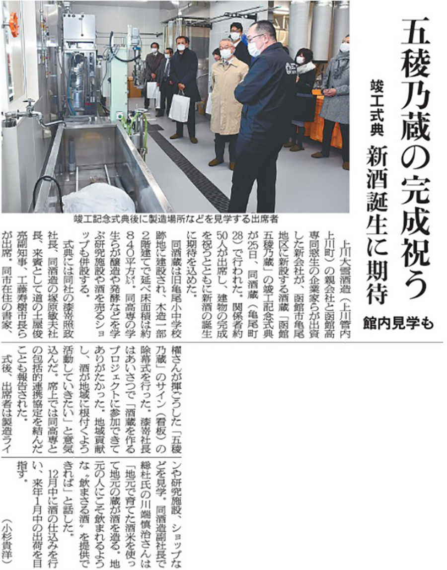 函館新聞に五稜乃蔵に関する記事が掲載されました。