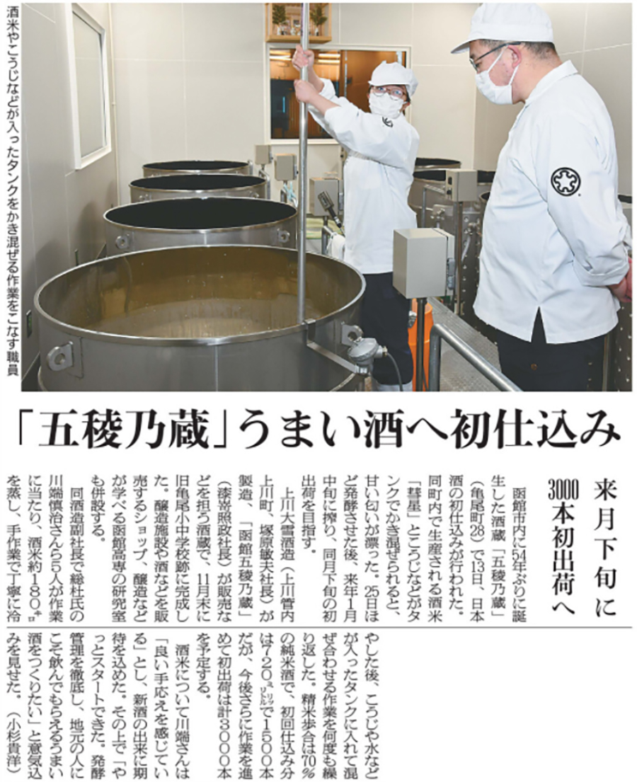 函館新聞 「五稜乃蔵」うまい酒へ初仕込み