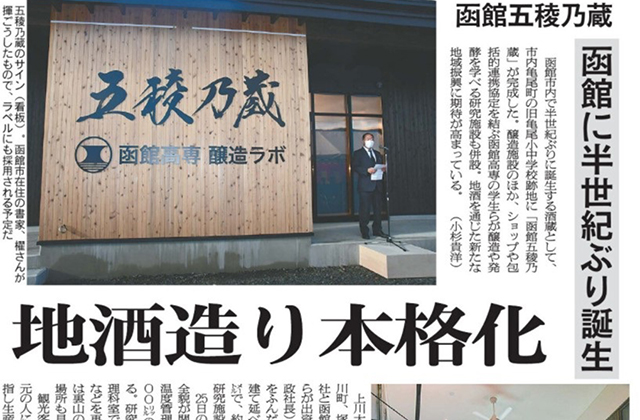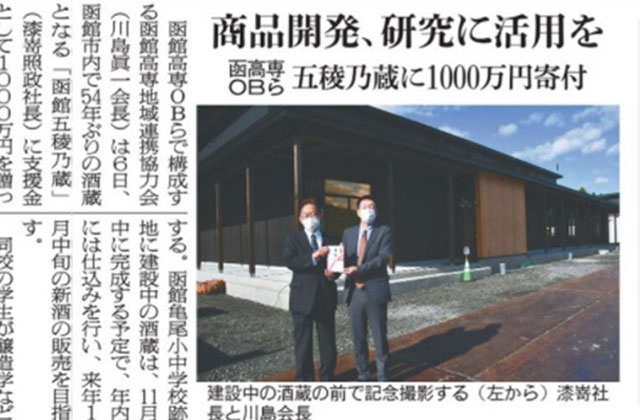 函館新聞 日本酒「五稜乃蔵」を支援 高専OBらが1000万円寄付