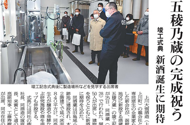 上川大雪酒造の「五稜乃蔵」完成 函館で仕込み開始へ
