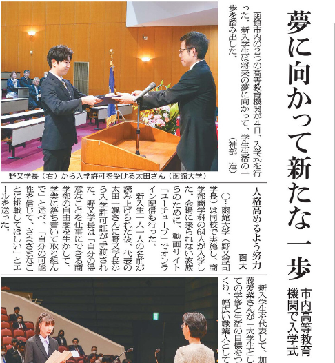 函館新聞 夢に向かって新たな一歩