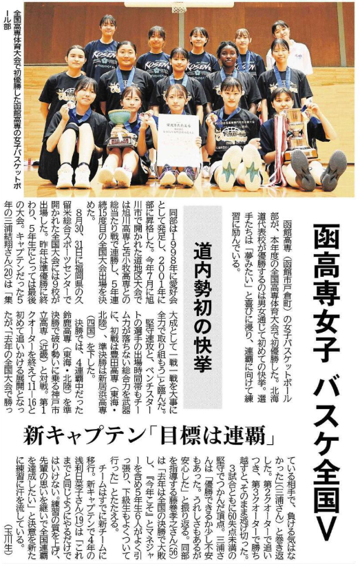北海道新聞 函館高専女子バスケ全国V 道内勢初の快挙